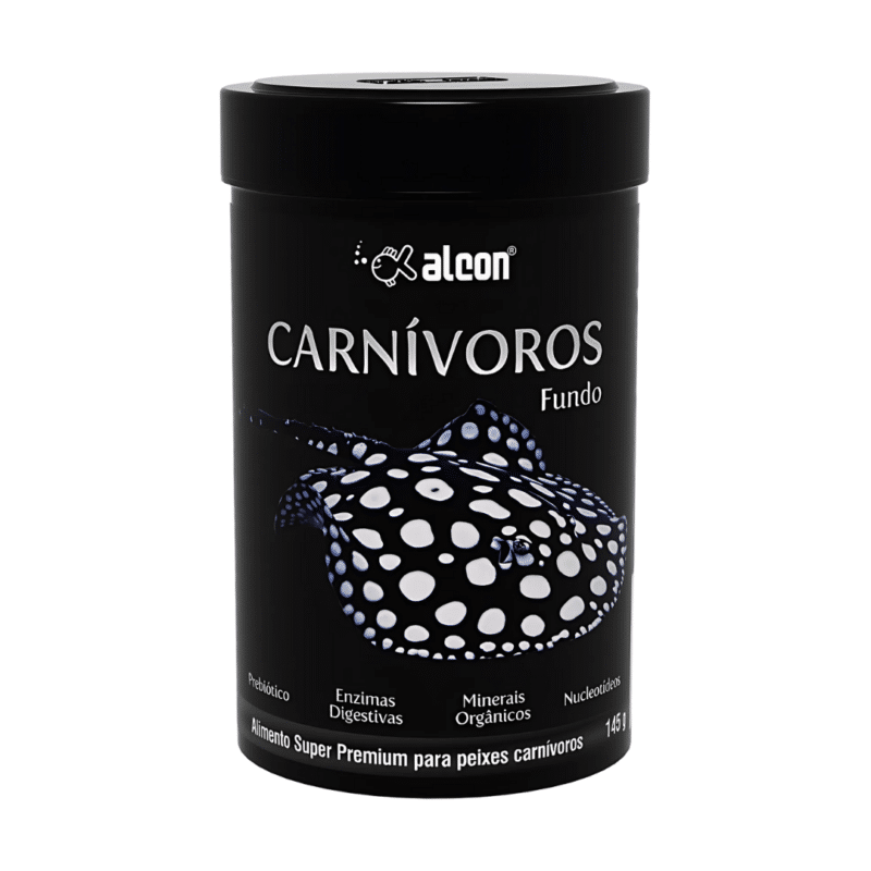 Alcon Carnívoros Fundo é um alimento completo Super Premium especialmente desenvolvido para peixes carnívoros que se alimentam no fundo dos aquários. O processo de extrusão garante densidade ao alimento para que chegue rapidamente ao fundo, enquanto o formato estimula a captura pelos peixes predadores. Ingredientes diferenciados, como lula e alho, garantem alta atratividade e grande palatabilidade a várias espécies de peixes como Arraia Negra, Jacundá, Pirarara e Pintado. Pode também ser oferecido para Bagre e outros peixes onívoros. Não contém corantes artificiais.