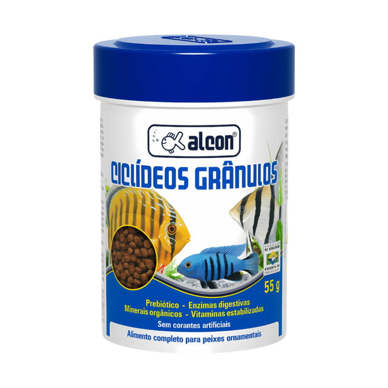 Alcon Ciclídeos Grânulos garante nutrição perfeita para Ciclídeos amazônicos, como Acará Disco e Acará Bandeira, e também para a variedade de Ciclídeos africanos. É um alimento muito versátil, pois é também muito apreciado por peixes marinhos diversos. Contém um carotenoide natural, a astaxantina, que realça a coloração natural dos peixes. Além de Enzimas Digestivas, apresenta fonte de Nucleotídeos e Prebiótico, que favorecem o desenvolvimento da flora intestinal benéfica, melhorando o aproveitamento dos nutrientes. Tudo isto sem corantes artificiais. Conheça também a interessante opção em flocos Alcon Cichlids. Para a manutenção adequada dos aquários utilize a linha de testes, condicionadores e corretivos Labcon.