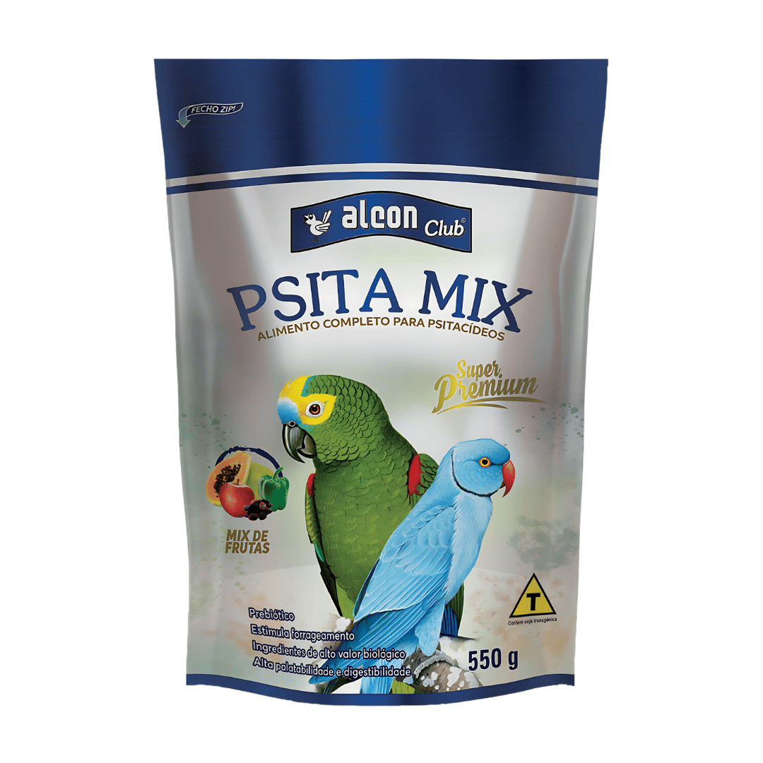 Alcon Club Psita Mix é um alimento completo Super Premium, cientificamente elaborado para suprir as necessidades nutricionais e energéticas de Psitacídeos adultos de grande e médio portes, como Araras, Papagaios, Jandaias, Maritacas, Ring Necks e Eclectus, durante a fase de manutenção. Sua composição balanceada, livre de corantes artificiais e palatabilizantes, combina perfeitamente o alimento extrusado com legumes e frutas desidratadas. Com ingredientes selecionados, vitaminas, minerais e Prebiótico, oferece excelente palatabilidade e digestibilidade. Além dos benefícios nutricionais, proporciona uma experiência alimentar que estimula o comportamento natural de forrageamento das aves. Alcon Club Psita Mix foi desenvolvido com granulometria e textura que promovem o consumo e reduzem significativamente o desperdício do alimento.