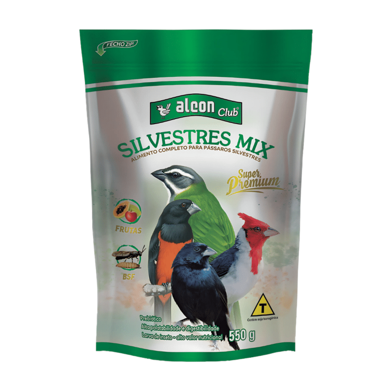 Alcon Club Silvestres Mix é um alimento completo Super Premium, cientificamente elaborado para suprir as necessidades nutricionais e energéticas de Pássaros Silvestres adultos durante a fase de manutenção. Sua composição balanceada, livre de corantes artificiais e palatabilizantes, combina perfeitamente o alimento extrusado com frutas desidratadas e larvas de mosca soldado negra – BSF (Black Soldier Fly). As larvas de BSF possuem uma completa composição de aminoácidos, sendo uma excelente fonte de proteínas biodisponíveis para as aves. Com ingredientes selecionados, vitaminas, minerais e Prebiótico, oferece excelente palatabilidade e digestibilidade. Além dos benefícios nutricionais, Alcon Club Silvestres Mix proporciona vantagens ambientais. As larvas de BSF são criadas de forma sustentável, utilizando resíduos orgânicos como substrato para sua reprodução, o que ajuda a reduzir a dependência de fontes convencionais de proteína animal.