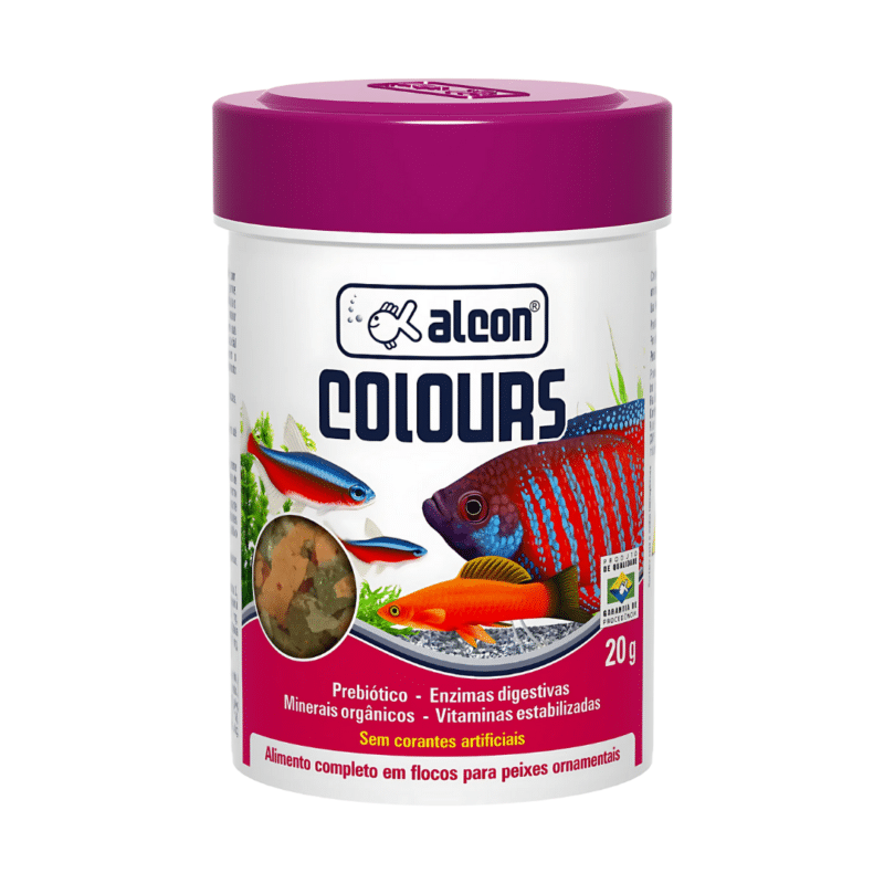 Alcon Colours foi desenvolvido para realçar as cores naturais e nutrir com qualidade os peixes ornamentais. Seus flocos combinam uma grande variedade de ingredientes selecionados. O carotenoide astaxantina estimula o realce das cores nos peixes tropicais e marinhos. Para maior biodisponibilidade dos minerais ao organismo dos peixes, possui em sua composição minerais orgânicos quelatados. Esta formulação especial também contém Enzimas Digestivas e Prebiótico, que favorecem o desenvolvimento da flora intestinal benéfica, melhorando o aproveitamento dos nutrientes. Não contém corantes artificiais. Para a manutenção adequada dos aquários utilize a linha de testes, condicionadores e corretivos Labcon.