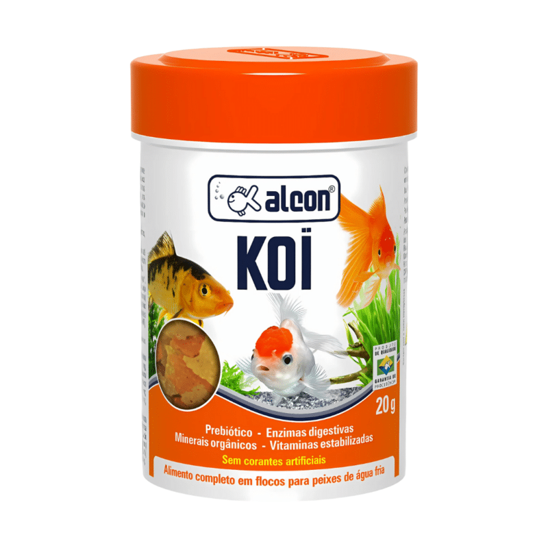 Alcon Koi é um alimento em flocos de fácil assimilação e grande atratividade, desenvolvido para peixes de água fria como Kinguios (Goldfish) e Carpas (Koi). Sua formulação especial apresenta minerais orgânicos quelatados, que representam maior biodisponibilidade dos minerais ao organismo dos peixes. Enzimas Digestivas e Prebiótico favorecem o desenvolvimento da flora intestinal benéfica, melhorando o aproveitamento dos nutrientes. Não contém corantes artificiais. Para a manutenção adequada dos aquários utilize a linha de testes, condicionadores e corretivos Labcon.