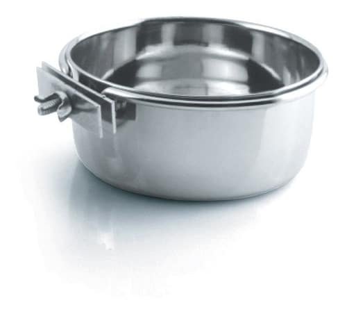 Comedouro pequeno para aves. Feito de inox é uma ótima opção para alocar o alimento do seu pássaro, é fácil de adaptar na gaiola ou no viveiro em que o seu bicho mora.